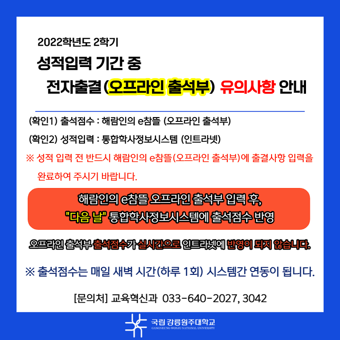 [필독] 전자출결(오프라인출석부) 유의사항 안내