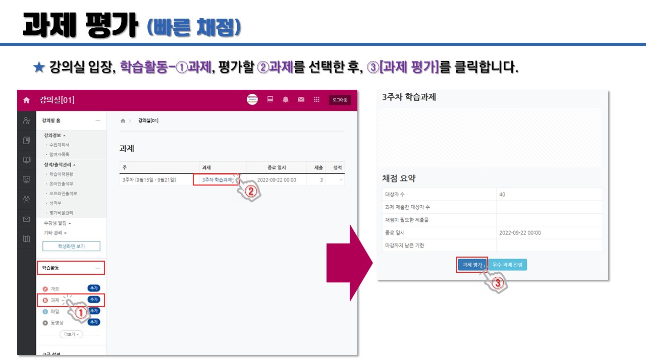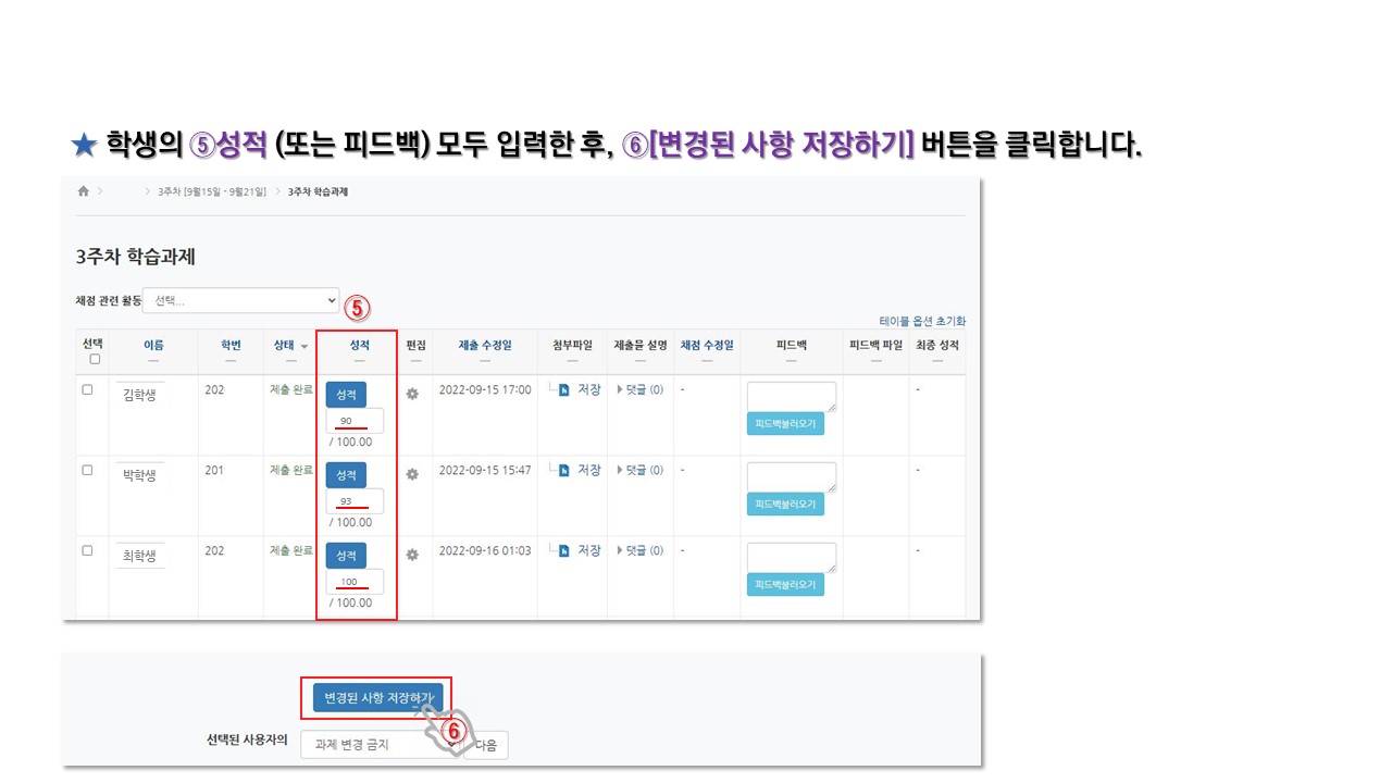 [교수자] 과제 평가 점수 일괄 입력하는 방법1 (빠른채점)