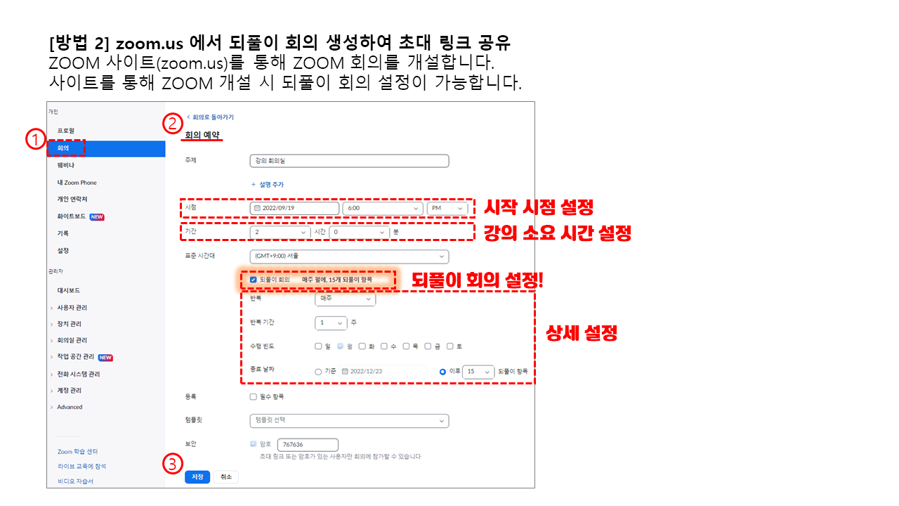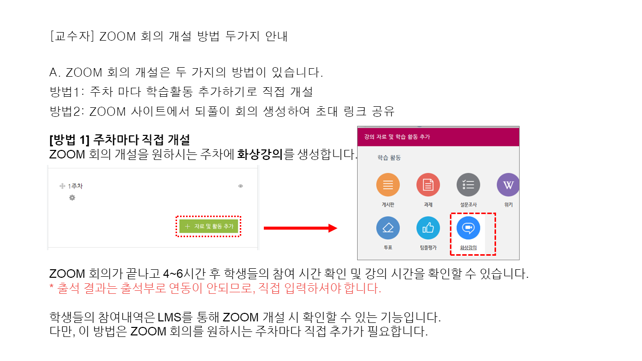 [교수자] ZOOM 회의 개설 방법 두가지 안내