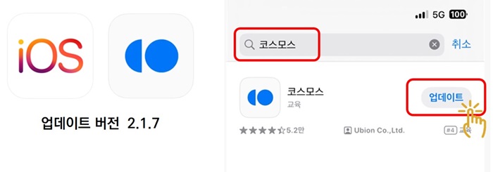 3. 해결방법 : 앱스토어 코스모스 앱 업데이트 실시 (ver.2.1.7) ※. 최신버전으로 업데이트를 해주세요.