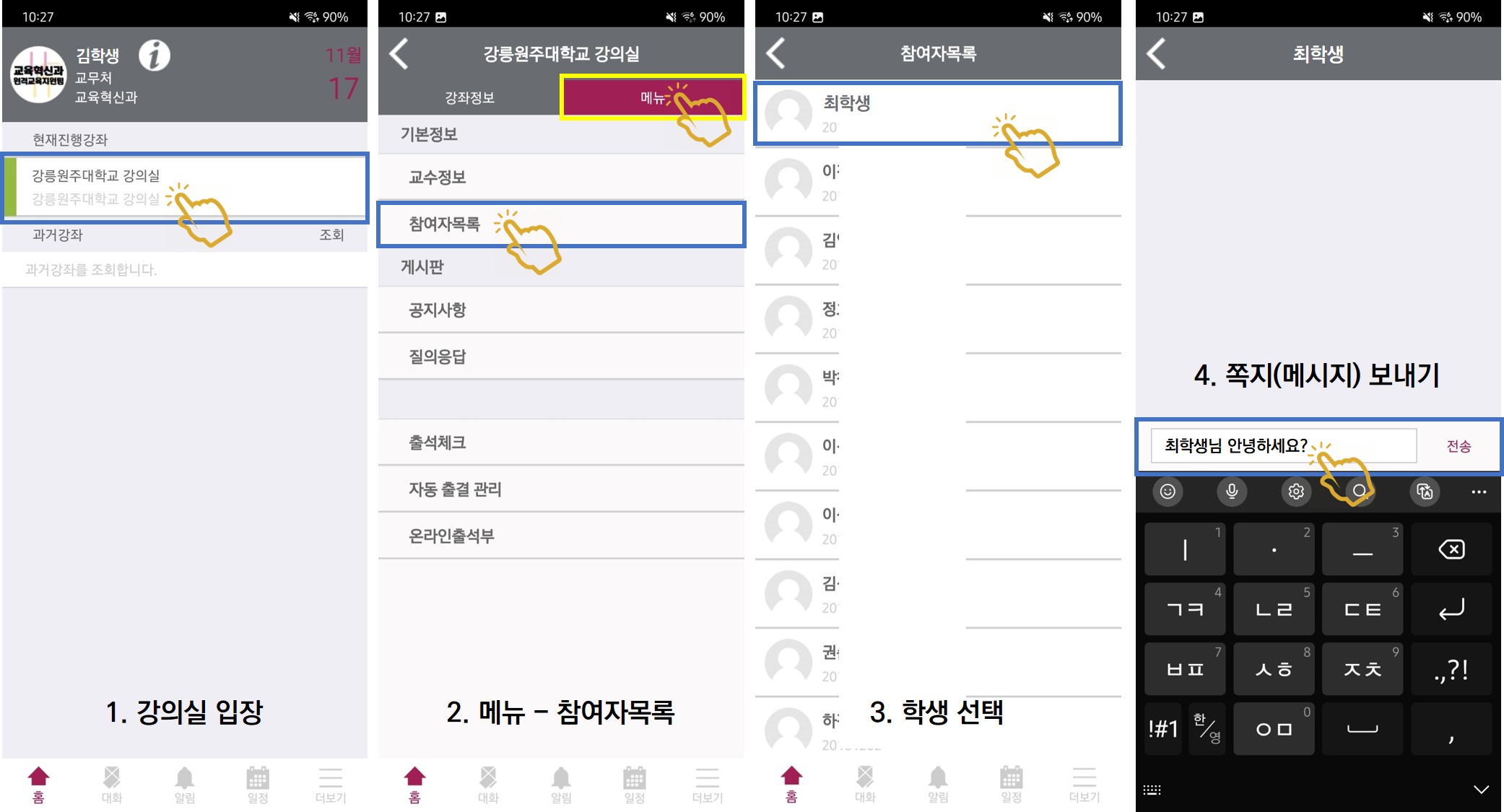 2. 같이 수업듣는 학생에게 쪽지보내는 방법