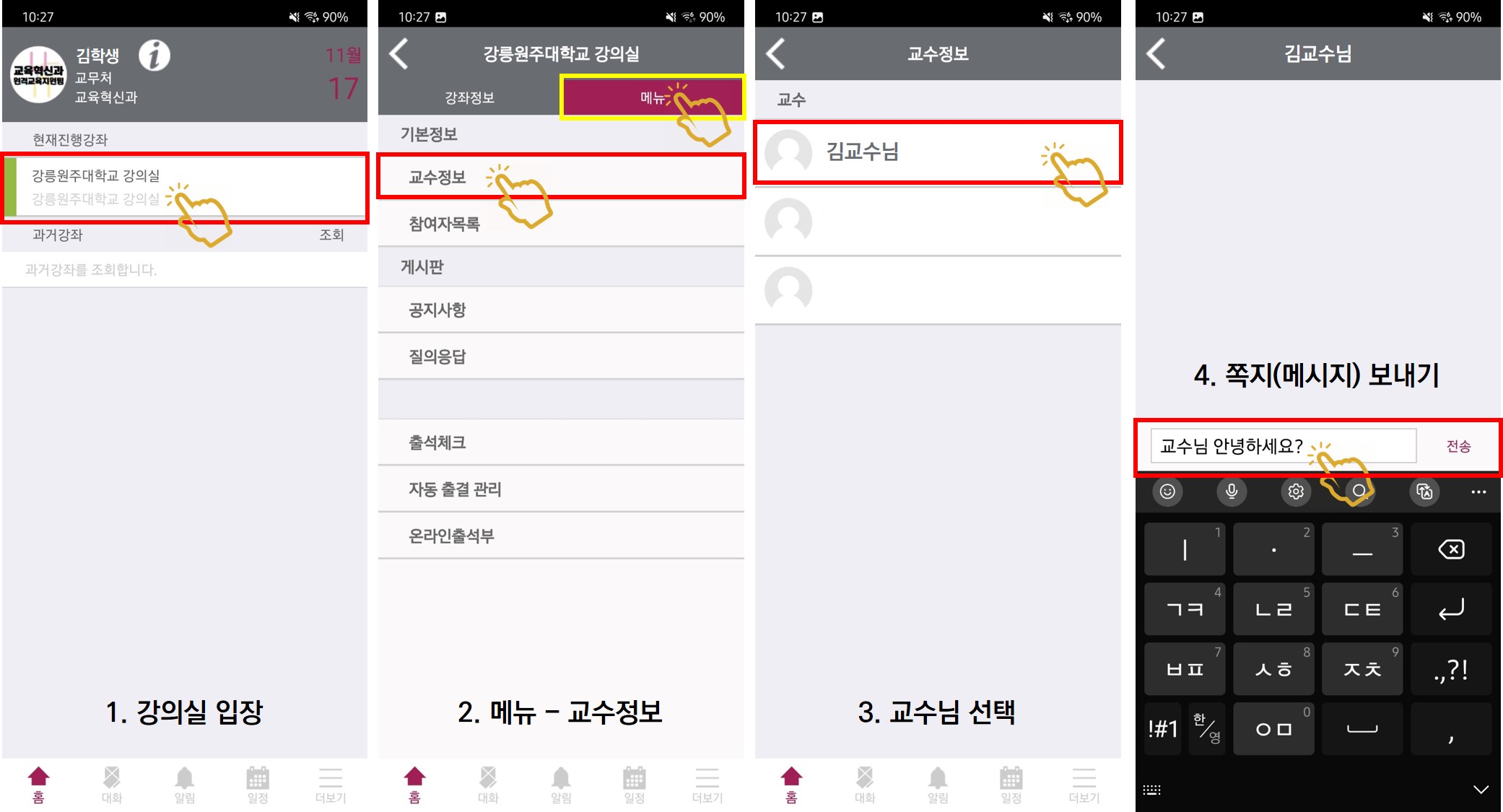 1. 교수님께 쪽지보내는 방법