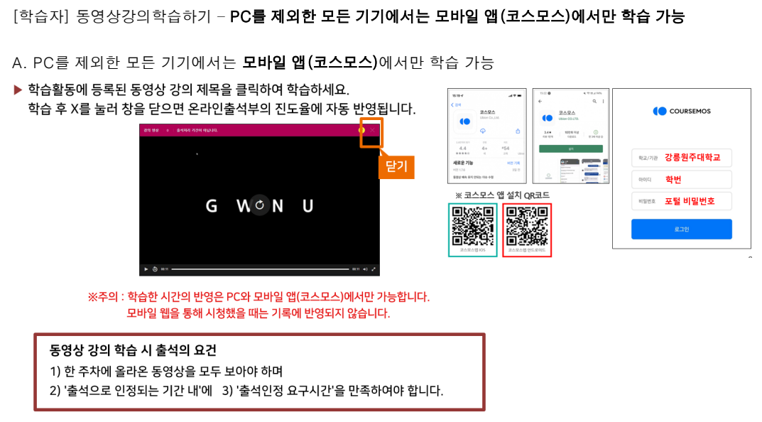 [학습자] 동영상강의학습하기 – PC를 제외한 모든 기기에서는 모바일 앱(코스모스)에서만 학습이 가능합니다!